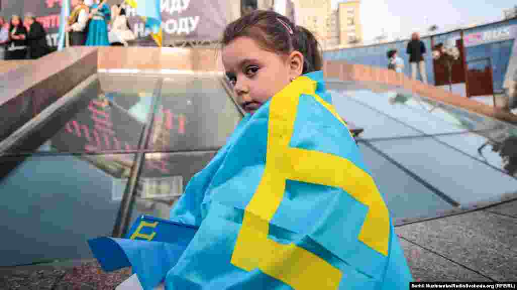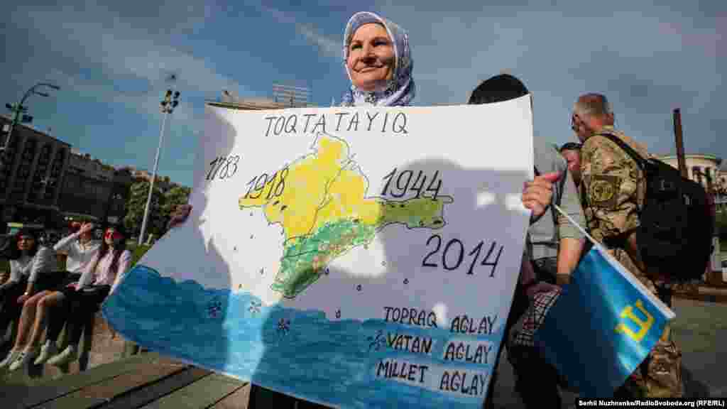 Kyivde faaller sürgünlikniñ 75 yıllığına bağışlap avtoyürüş keçirdi. Maşna kolonnası "Ekspotsentr Ukrainı" Milliy Kompleksiniñ yanında toplanıp, Mustaqillik Meydanını yol tuttı, anda ise aqşam matem mitingi keçirildi.
