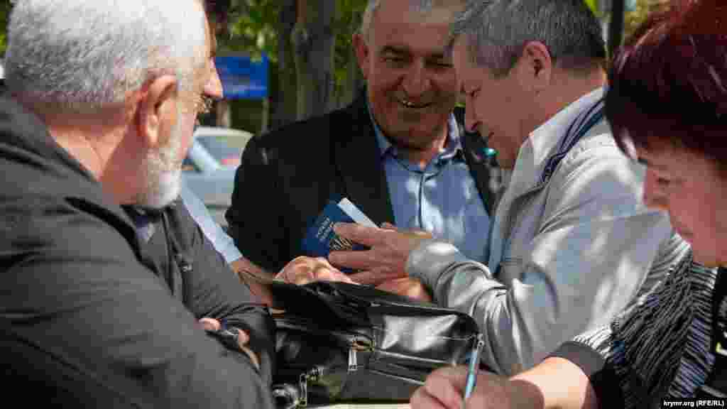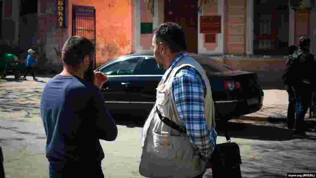 Aqrabalar, dostlar, aq-uquq qorçalayıcıları, cemiyet faaliyetçileri ve pervasız insanlar «fevral 26 işi» boyunca oturışuvlar keçken Rusiyeniñ kontroli altında olğan Aqmescitteki Merkeziy rayon mahkemesi yanına kelmege devam eteler. Bütün bu vaqıt içinde qırımtatar faaliyetçileri muhakeme etilgenlerge tışarıdan qol tuta, çünki olarnı içerige yibermeyler.